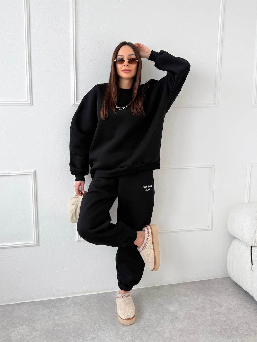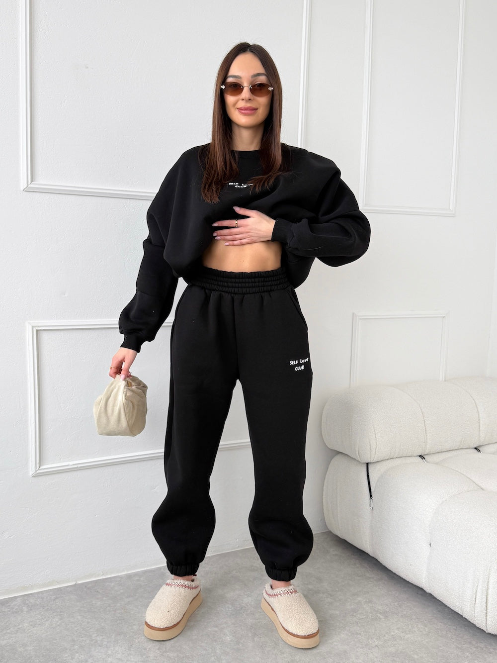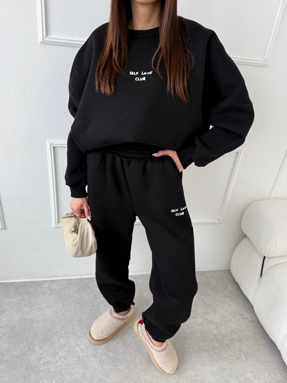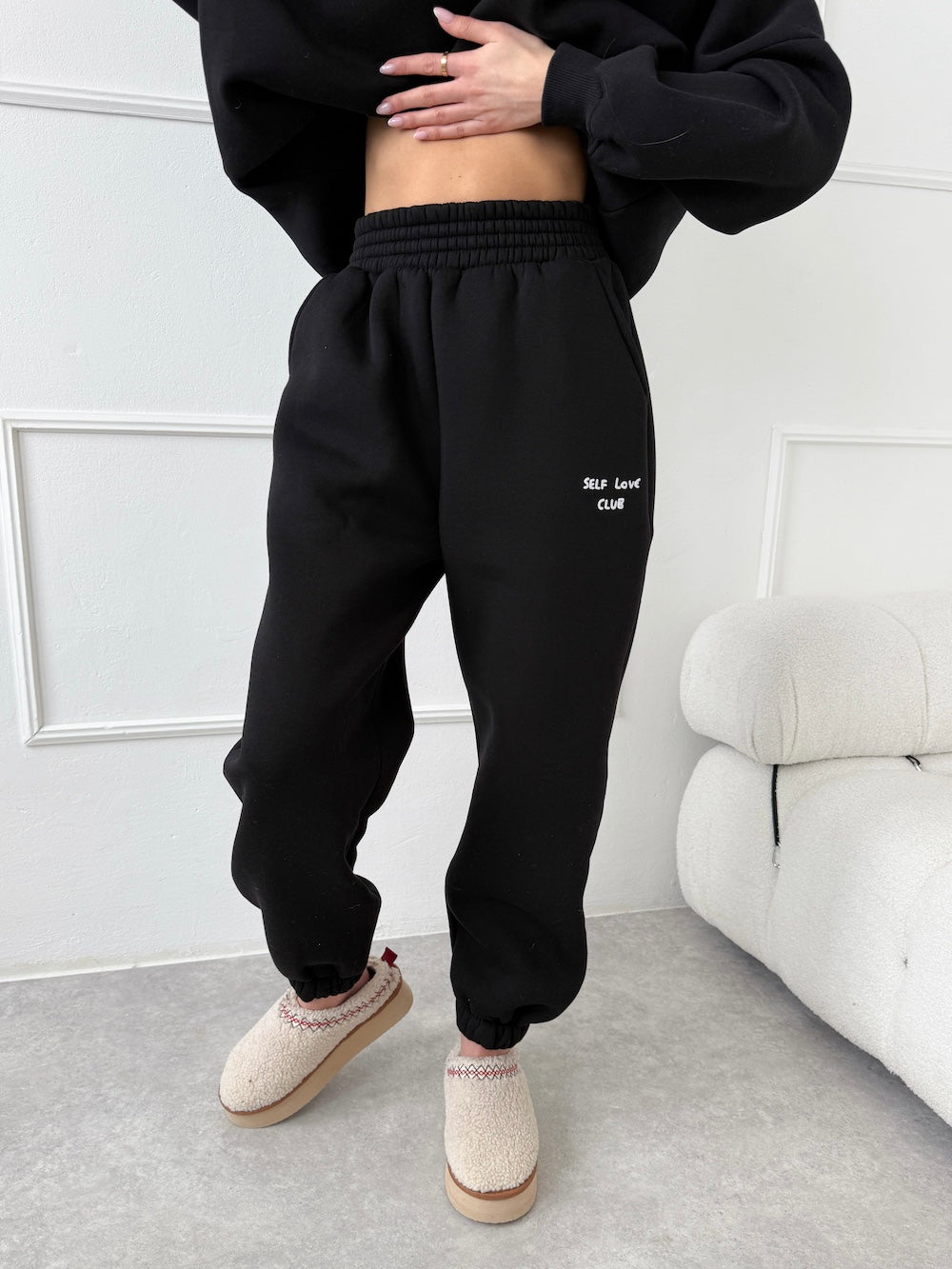 ČIERNE TEPLÁKOVÉ NOHAVICE SELF LOVE