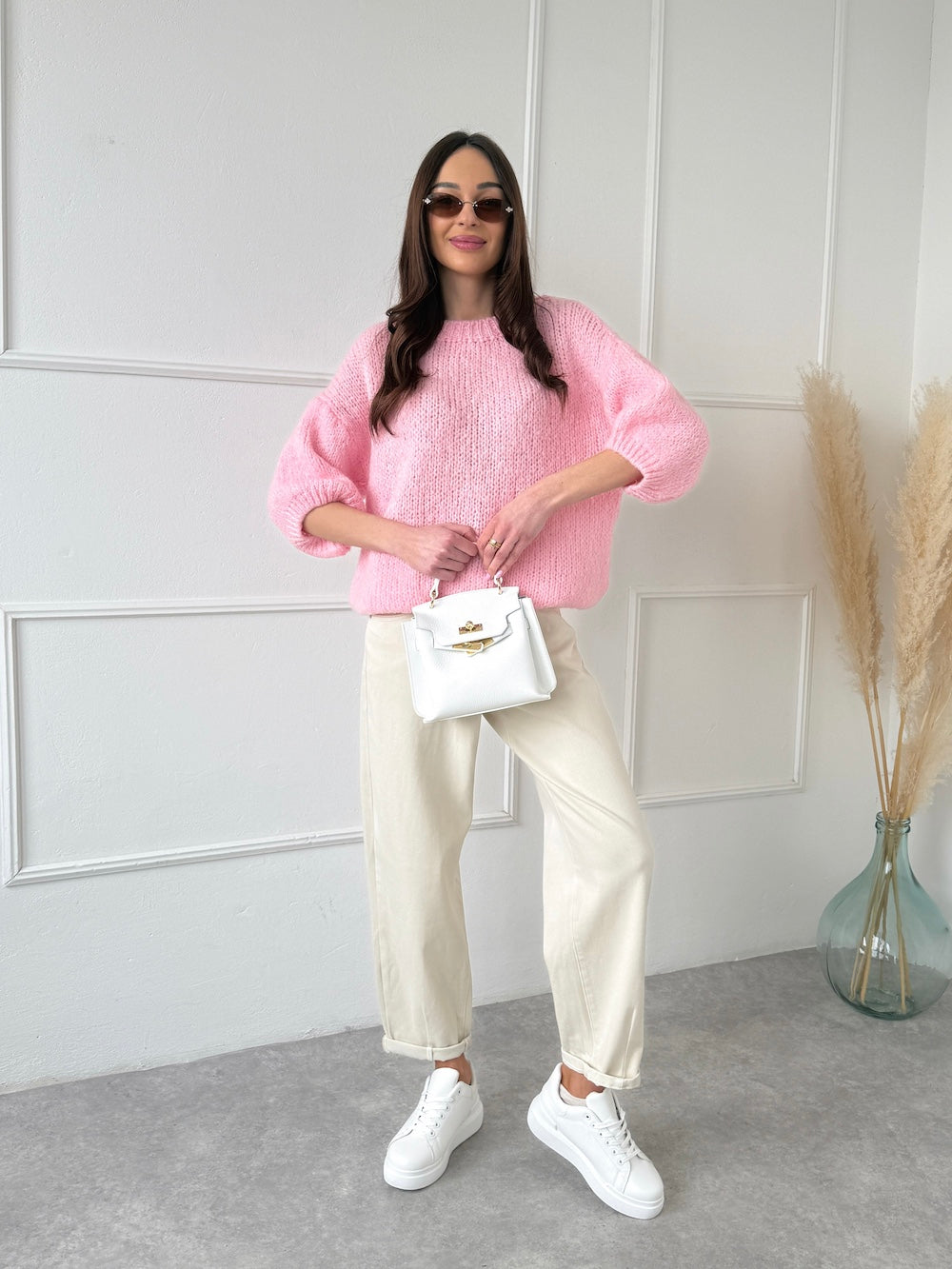 RUŽOVÝ SVETER ISABELLA SO SKRÁTENÝM RUKÁVOM