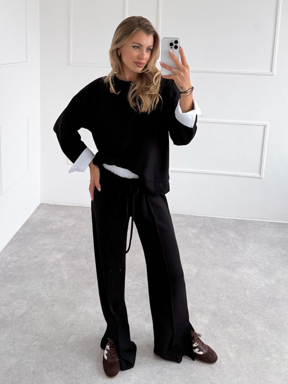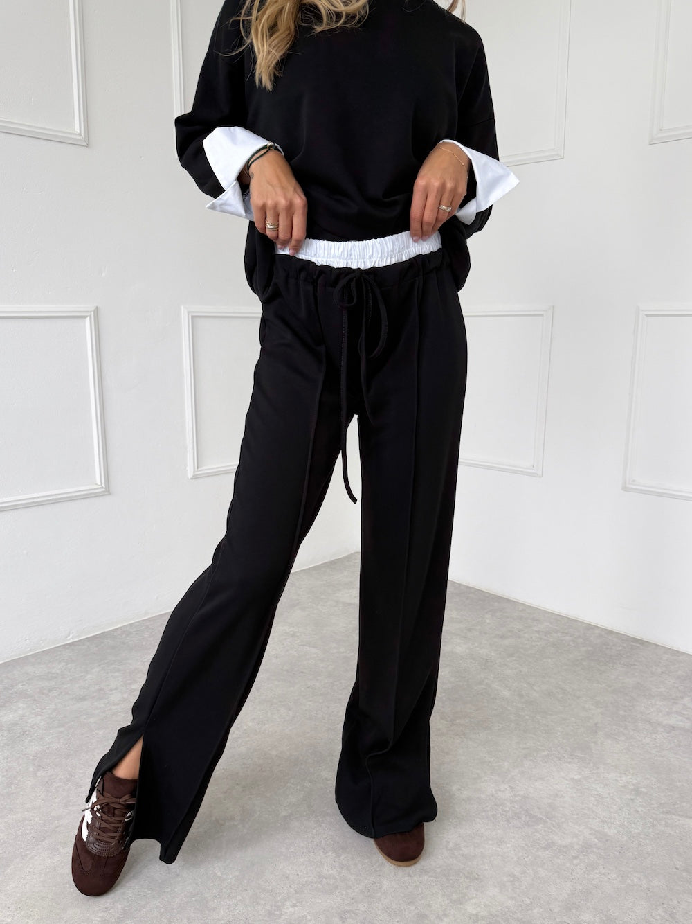 ČIERNE TEPLÁKOVÉ NOHAVICE RUMYA